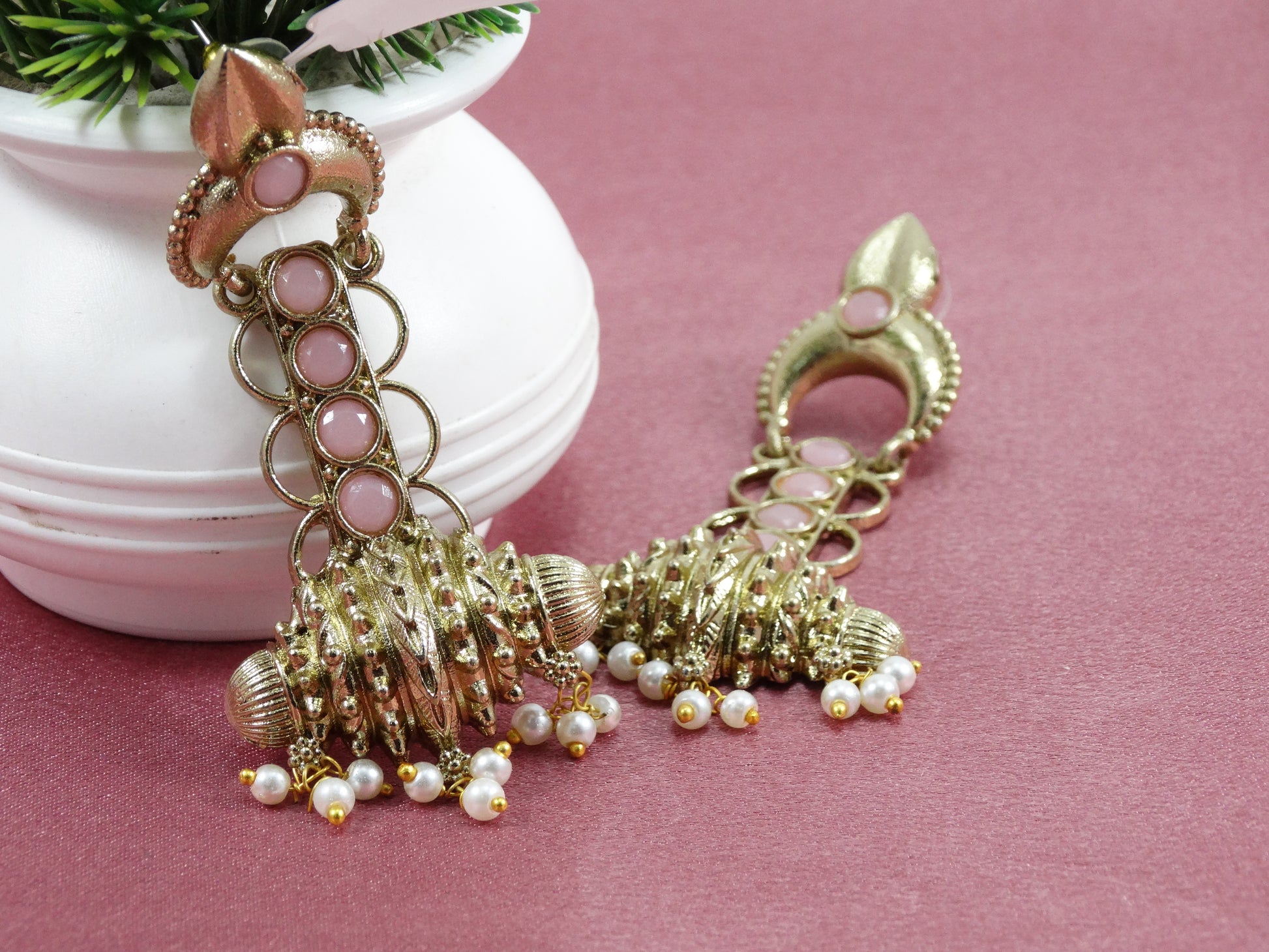 Material: Brass gold Look Alike with Coral Pink Stones.