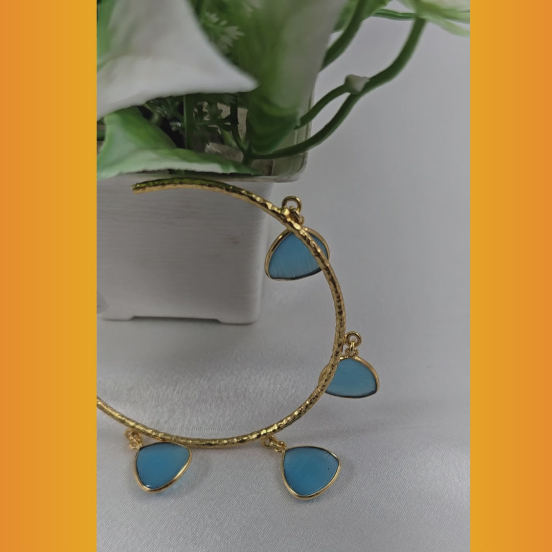 This elegant statement cuff features turquoise blue, adding subtle sparkle to any look. Crafted with sturdy brass, each semi-precious stone is individually inlaid for a perfect finish. Show off your good taste in timeless style.
